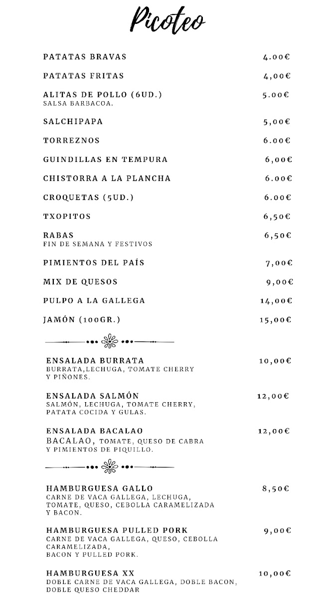 Welcome to EL GALLO NEGRO - BILBAO, an inviting coffee shop and bar located in the heart of Ibaiondo, Bilbao. Renowned for its vibrant atmosphere, this establishment serves up a delightful mix of drinks and tapas perfect for any occasion. The menu highlights stand out, especially the Vermú preparado and Aperol Spritz, both priced at an affordable €3.00 and €5.00, respectively. For those seeking a hearty snack, the Patatas Bravas and Alitas de Pollo will surely satisfy, offering robust flavors at just €4.00 and €5.00.